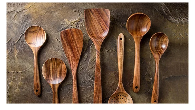 Teak Wood spatula simply coated with natural plant oil -- No Varnish!